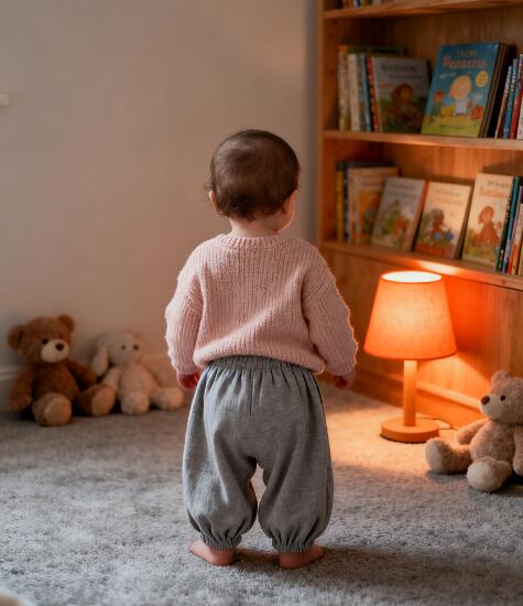 当宝宝开始接触绘本、玩拼图等近距离活动时,需要更充足的光线保护视力。建议以 “屋顶灯为主光源”,再搭配一盏可调节亮度的台灯(放置在宝宝活动区域的侧前方,避免光线直射眼睛或在书页上形成阴影),确保宝宝看绘本时,书页上没有反光,字迹清晰不费力。这里要特别提醒:不要只用台灯而不开屋顶灯,局部强光会让眼睛处于 “明暗对比强烈” 的环境中,反而更容易疲劳。
