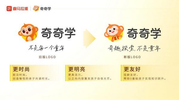 全新的喜马拉雅奇奇学品牌标识以“更时尚、更明亮、更友好”为主线,采用高明度色彩组合与简洁的图形化设计,向大众呈现出更贴合当代儿童审美、更有活力的卡通形象。同时,喜马拉雅奇奇学品牌使命焕新升级为“奇趣探索,不负童年”,寓意着喜马拉雅奇奇学将持续构建充满奇趣与未知的学习场景供孩子探索,引导孩子主动走近广阔的世界,并将持续用专业陪伴守护孩子的美好童年,带给孩子更多高品质的启蒙教育内容,让每一个孩子都能获得能力的提升与个性的绽放。