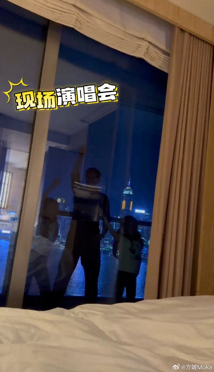 照片中,方媛身处月子中心场景,身着明黄色短款上衣搭配黑色紧身瑜伽裤。从镜头呈现的画面来看,她四肢线条纤细,腹部平坦,整体身形与未生育前差异较小,难以让人联想到刚完成生产。此次分享的照片里,还包含四层满月蛋糕、三个女儿并排的脚丫印特写,以及她怀抱熟睡小女儿的画面,小女儿头发浓密,安静依偎在她臂弯中。另外一张照片中,郭富城出现在阳台区域,正陪同两个大女儿玩耍,画面中能看到三人互动的场景。