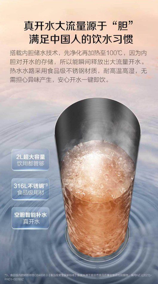 1. 100°C真开水,定义健康热饮新标准:其核心突破在于可直出100°C沸腾真开水,而非常见的80-90°C热水。这确保了它能完美胜任泡茶、冲咖啡、烫洗婴儿奶瓶及餐具等需要高温灭菌的场景。依托2L大容量316L食品级不锈钢内胆,实现2L/min的大流量秒出开水,彻底告别等待。
