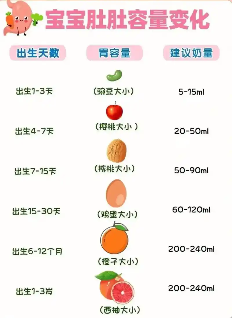 0-1岁是宝宝生长发育的第一个快速生长期,科学喂养和护理至关重要。新生儿胃容量很小,出生第1天约5-7毫升(像樱桃大小),每次喂10-20毫升左右;出生第3天约22-27毫升(像核桃),每次喂30-40毫升;出生第1周约45-60毫升(像杏子),每次喂60-90毫升。判断宝宝是否吃饱的信号包括:吃完后表情满足,安静入睡或愉快玩耍;出生后第5天起,每天有6-8片沉甸甸的湿尿布;出生初期每天有3-4次黄色糊状便;出生2周后恢复到出生体重,之后平均每周增重200克左右。对于特殊宝宝如巨大儿(出生体重≥4000克),核心原则是避免过度喂养,重点监测血糖,学会识别"饱腹信号":当宝宝扭头、闭紧嘴巴或吐出奶头时,请停止喂养,尊重他的感受。